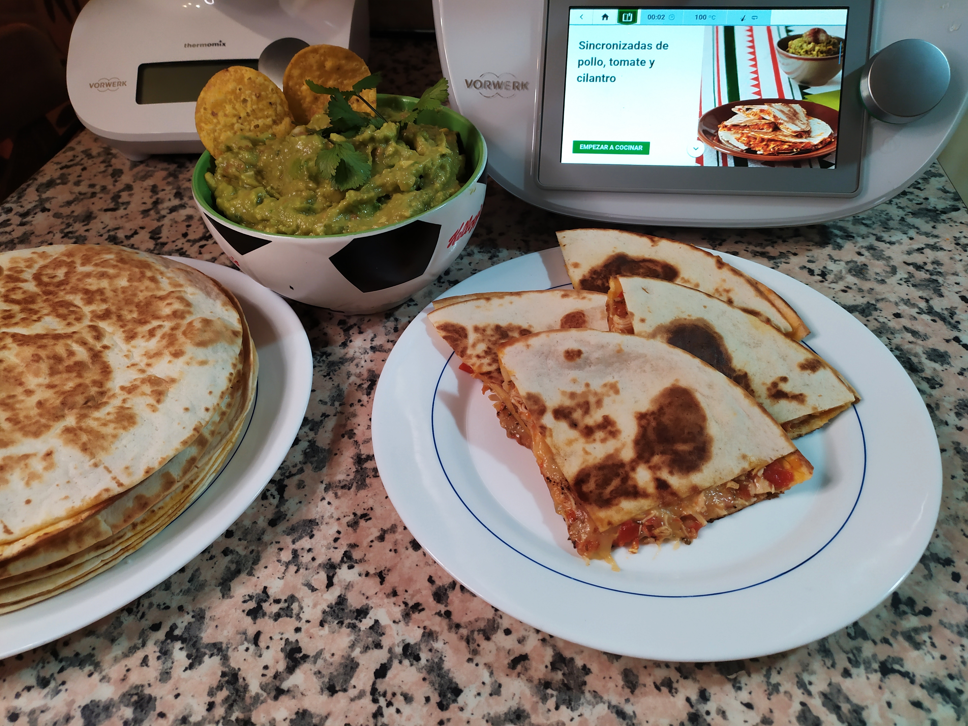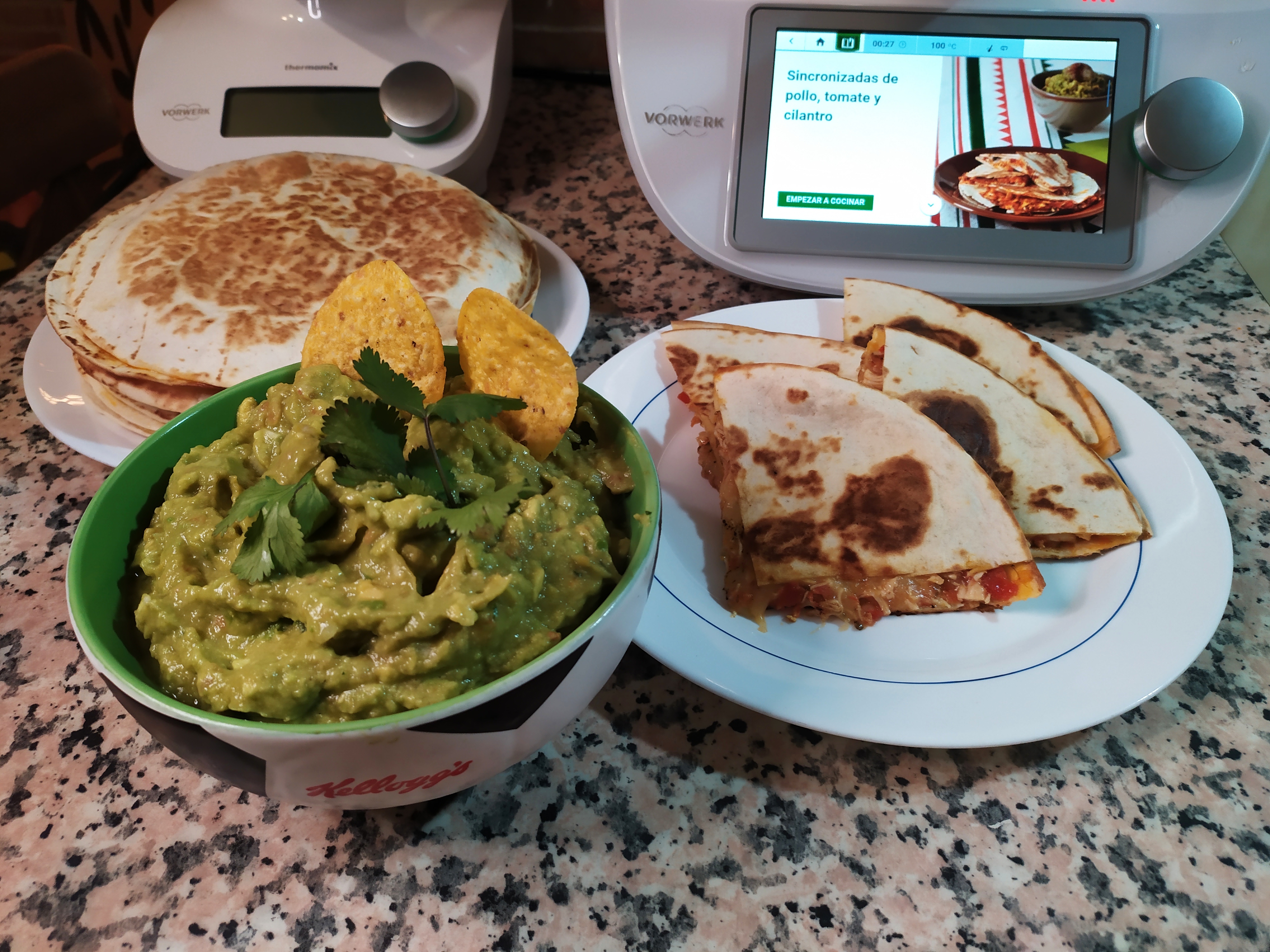 Sincronizadas de pollo, tomate y cilantro