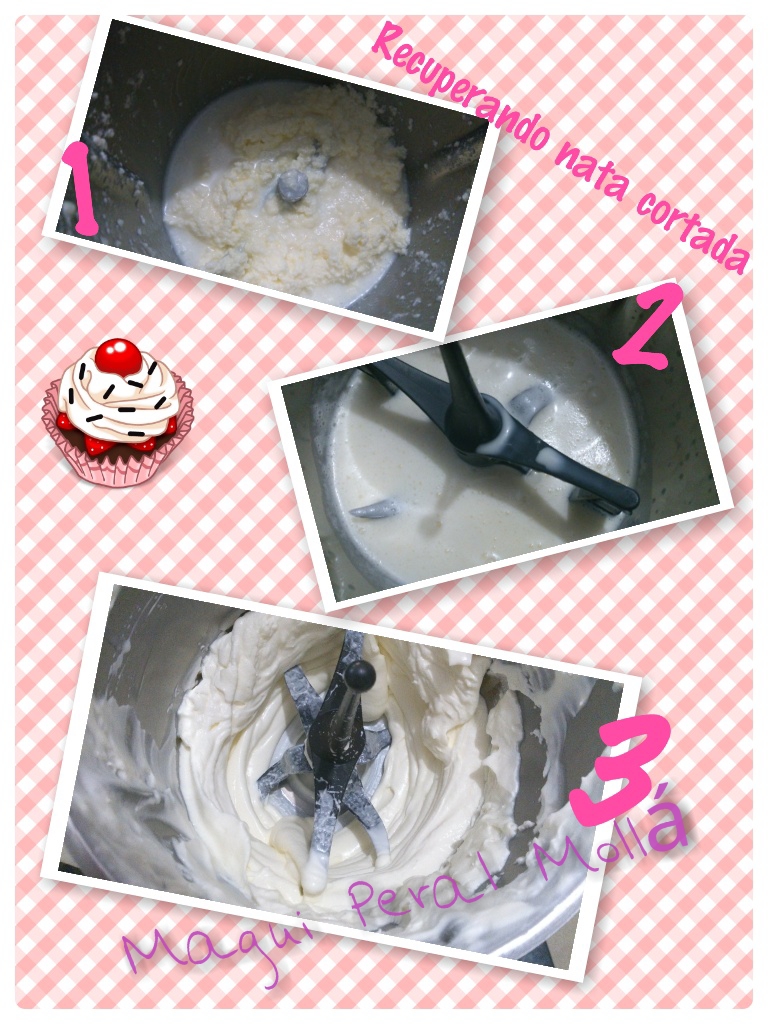 ¿Os ha pasado alguna vez que, montando nata os habéis pasado de tiempo, y se ha cortado? También nos puede pasar haciendo un helado cremoso. Yo no tengo heladera, pero algunas de mis amigas la tienen, y me dicen que salen los helados muy cremosos. Hasta la fecha los voy haciendo en thermomix, pero para l@s que utilizáis la heladera, por si os pasa lo que le pasó a mi amiga Rocío, os voy a poner cómo salir del paso, tanto si se trata del helado, como si se trata de recuperar nata montada cortada, incluso un truco para montar nata sin nata. Sí, sí...seguid leyendo que luego os lo cuento
