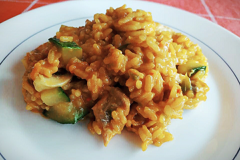 - Si tienes un TM6 busca la receta "arroz cremoso con salmón y gambones", para poder usar la alta temperatura. Sigue la receta guiada teniendo en cuenta mis recomendaciones para añadir el concentrado de caldo casero y/o para hacer el fumet. Si tienes un TM5 con cook-key y la suscripción a cookidoo la encontrarás guiada como "risotto de gambones y calabacín"