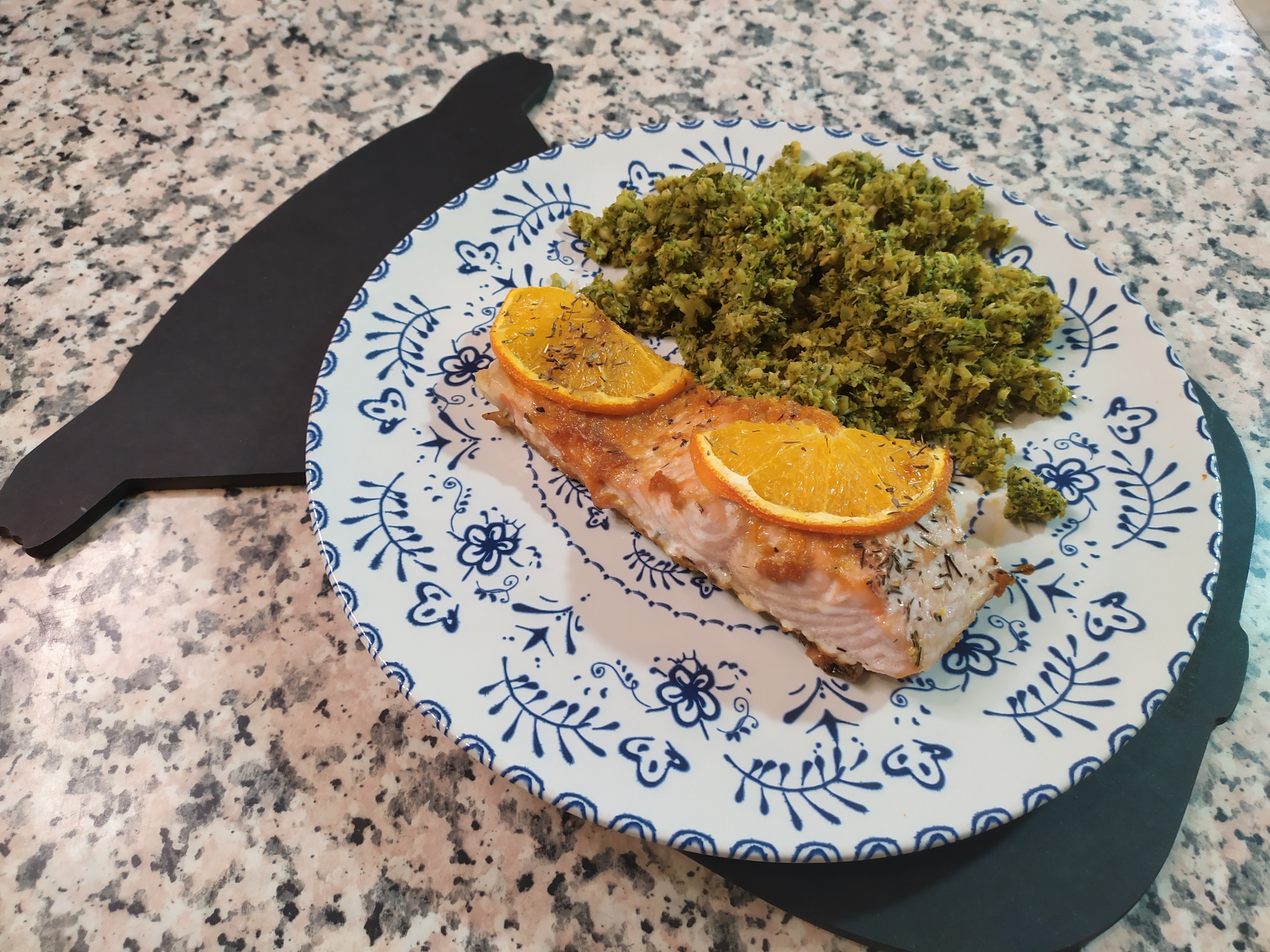 Salmón a la naranja con cuscús de brócoli