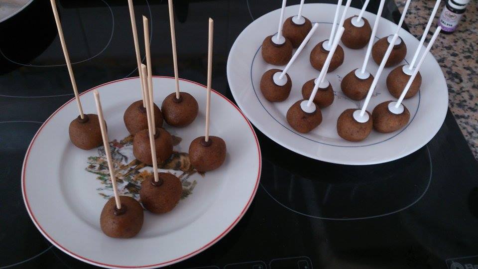 - Palitos para cake pops (Las brochetas nos valen, pero me ha gustado más trabajar con los palitos específicos, ya que se adhieren mejor a la bola