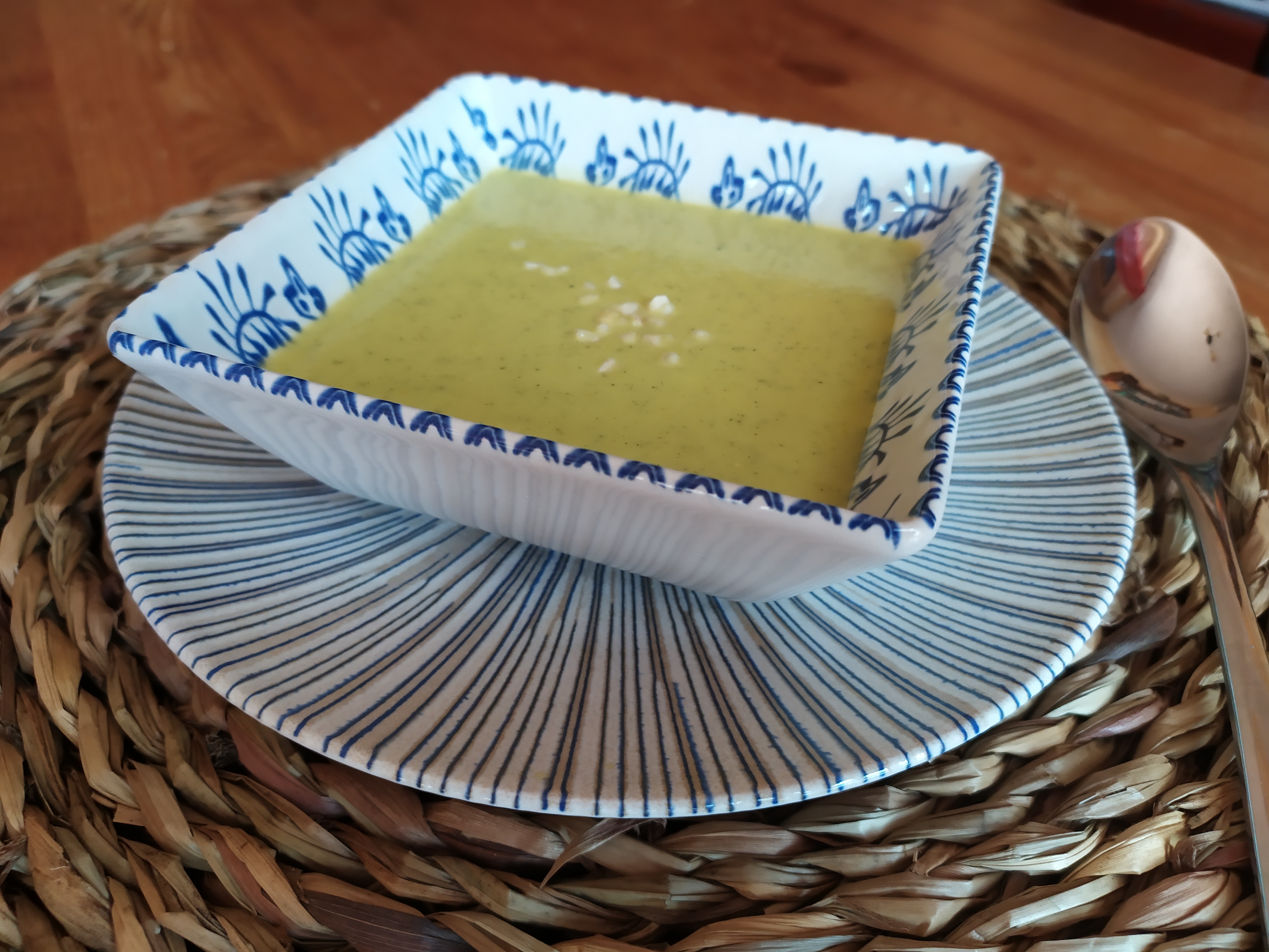 Con el calor que hace, ¿cómo se me ocurre hacer una crema de calabacín? XD Pues había que hacerla. Cuando tu hermano ha plantado calabacines y hay excedente de cosecha... solución: poner el ventilador, el aire acondicionado...o esperar a que temple un poquito jejeje. Está deliciosa. Así que merece la pena. El punto de espesor es ya al gusto de cada casa. En mi caso no me gusta muy espesa. Pero tampoco sopa. Prueba y me cuentas. Te dejo también un vídeo para que veas cómo me queda con estas cantidades de agua