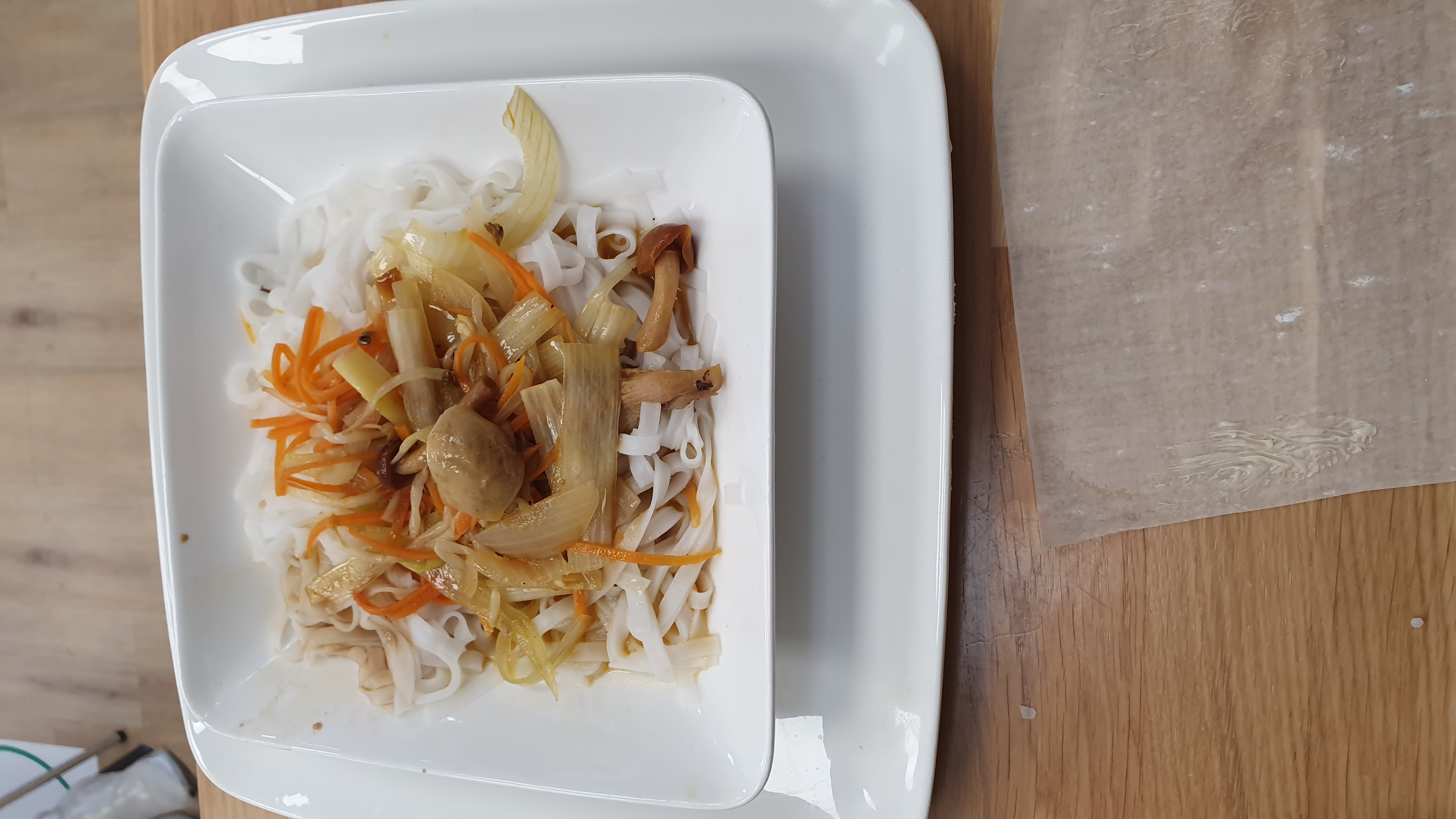 Chop suey vegetariano con Noodles de arroz.
