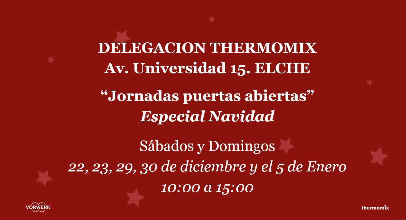 La Delegación de Thermomix de Elche va a organizar unas “Jornadas puertas abiertas” los sábados y domingos de las 10:00 de la mañana hasta las 15:00 de la tarde.