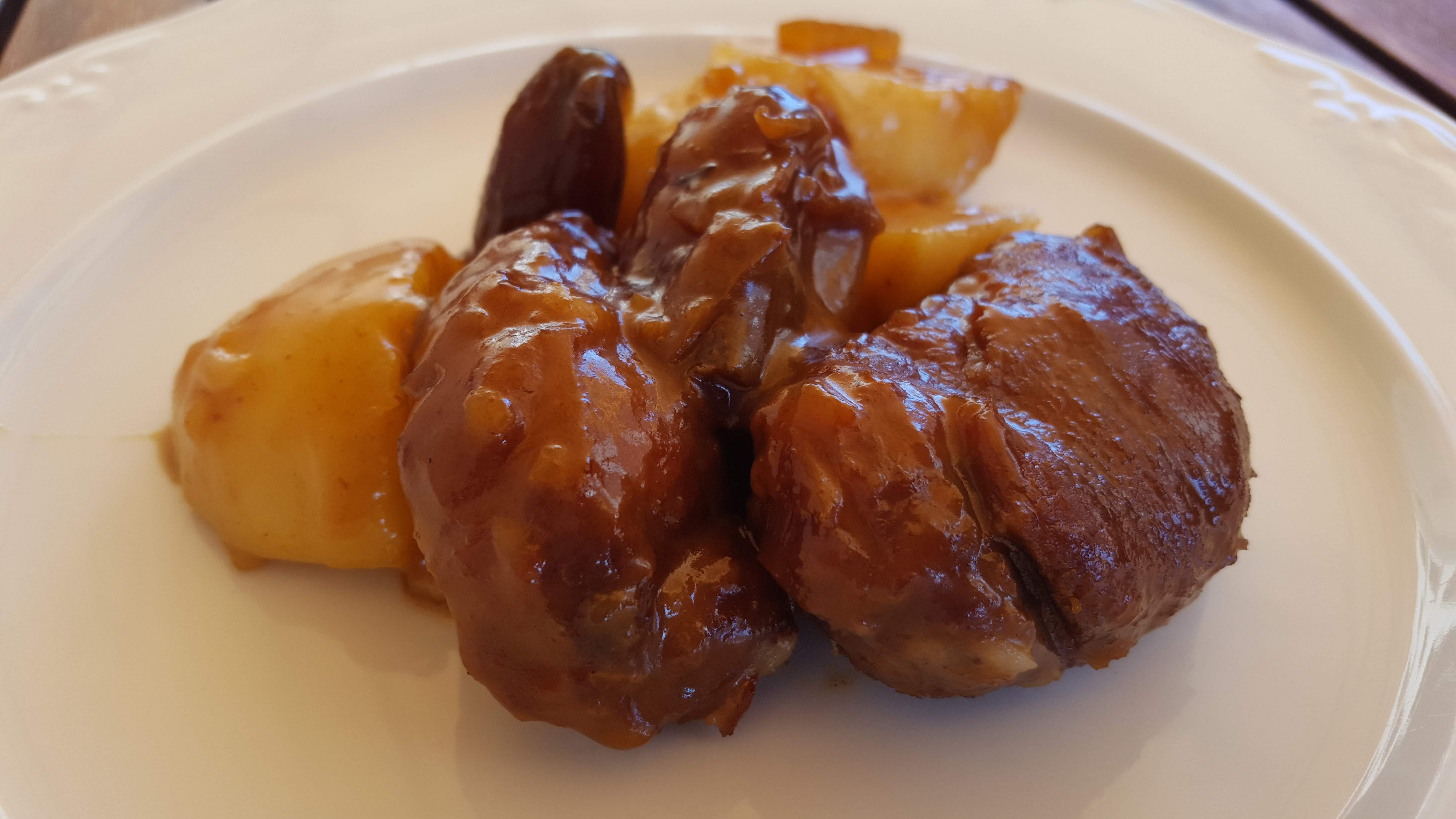 Cogiendo como base la receta de cookidoo de carrilleras estofadas con wisky hemos preparado una versión muy interesante, con un poco de Moscatel que había desde Navidad, unos dátiles sin hueso que tenemos siempre (como buena ilicitana) para sustituir los ingredientes de la receta original que nos faltan.