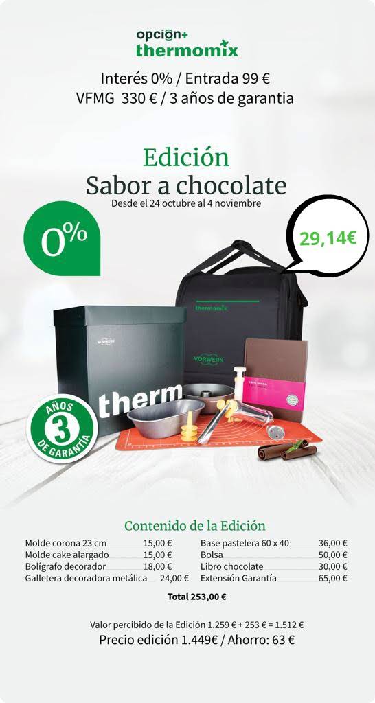Adelántate a la Navidad y consigue ahora tu Thermomix TM6 financiado SIN INTERESES, con una extensión de garantía de 3 años y una fantastica Edición limitada Sabor a Chocolate, por una cuota diminuta al mes de sólo 29,14€