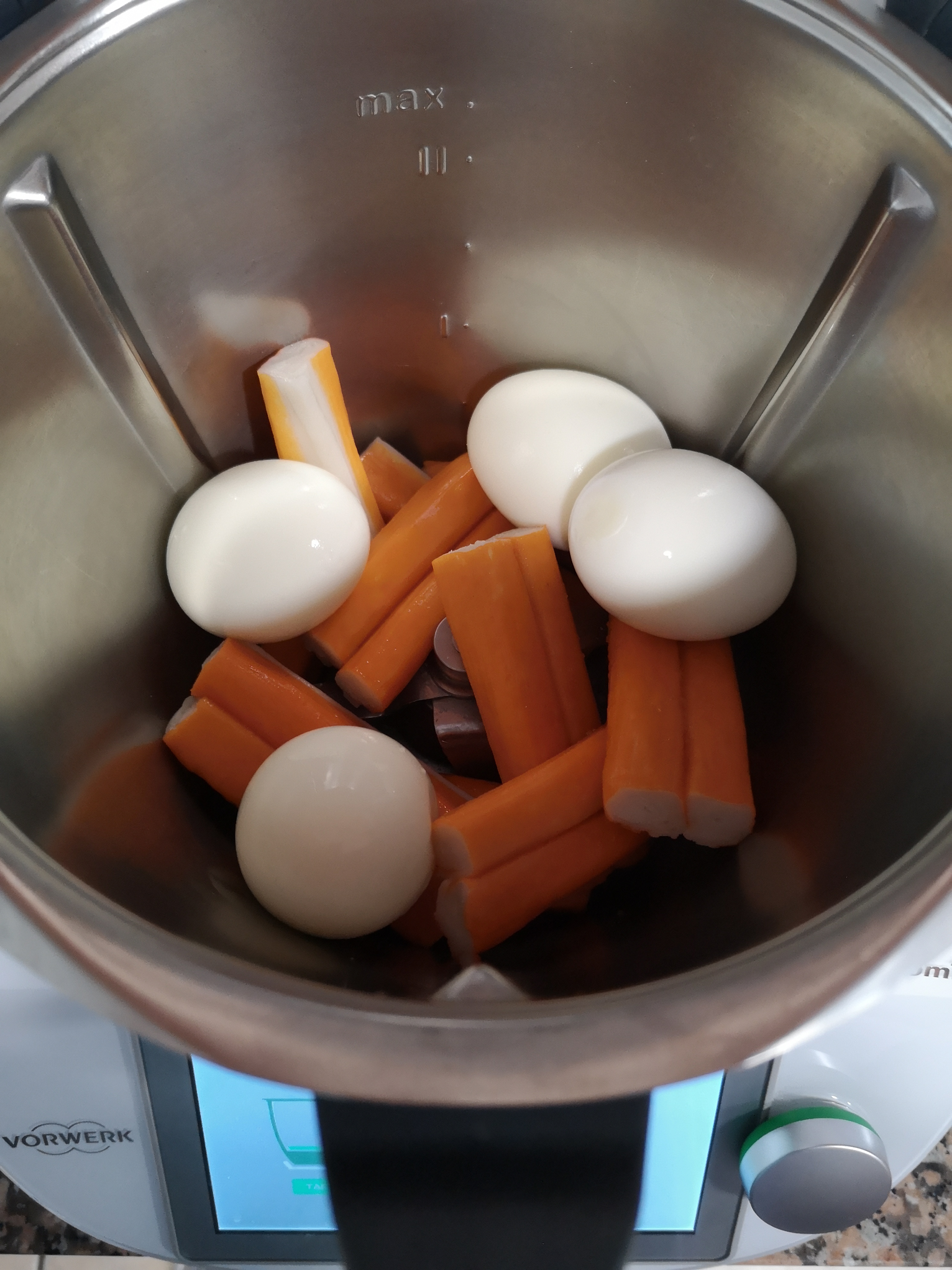 - Programar 7 segundos velocidad 4 si queda algún trozo más grande bajar con la espátula de las paredes y poner 2 segundos más velocidad 4.